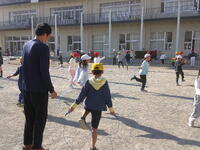 前半は、開会式から始まりました。「学校紹介」の場面では、代表のお友達がとっても上手に発表することができました。続いてグループをつくって自己紹介をした後、グループ対抗の「ひらがな並べゲーム」「逃走中」で盛り上がりました。