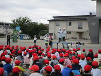 1泊2日で大きく成長した子ども達、施設で後半チームを迎え、バスから手を振って学校に向かいました。