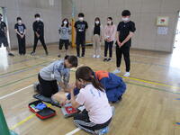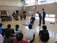 また、本日は流山市消防本部南消防署の方々を講師にお迎えして、心肺停止状態になった場合の救命について学びました。胸骨圧迫の正しい方法から救急車の要請、AEDの使用法について全教員が体験しました。消防士の皆様方には、お忙しい中丁寧にご指導をいただきまことにありがとうございました。