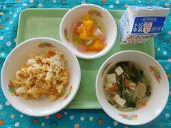 今日のリクエストメニューは、デザートで1番人気のフルーツポンチです。多くのクラスでリクエストメニュー1位でした。果物がたくさん入っており美味しいですよね。