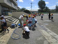 1年生は、久しぶりの青空の下、水遊びを楽しんでいました。