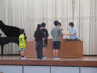 今日は、全校児童が体育館に集まって、表彰式と1学期の終業式を行いました。