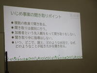 1学期、5年生に「いじめ防止授業」をしてくださった流山市教育委員会指導課いじめ防止相談対策室の指導主事の先生に、本校職員へいじめ防止や組織的対応に関する研修を行っていただきました。ふだんから校内で心がけている初期対応や組織的対応の大切さを改めて確認することができました。いじめが起こりにくい、互いを思いやる温かい人間関係づくりに力を入れるとともに、子供の様子や表情をよく見ること、アンケートや心の天気から察知するなど、苦しい思いをしている児童がいないか、日頃からアンテナを高く持てる教職員集団でありたいと思いました。そして、「南流山小学校 学校いじめ防止基本方針」にあるとおり、いじめの訴えがあったときには、すみやかに組織的対応をとって児童の安心につなげていくことに全力を尽くす学校でありたいと思います。