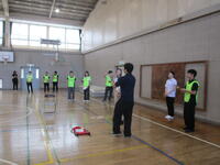 後半は、体育の授業中に児童にアナフィラキシーの症状が出たという場面を想定してシミュレーションを行いました。職員室の先生に知らせる児童役、その場にいる他の児童を落ち着かせる役、管理職を呼ぶ役、AEDを持って行く役、児童のエピペンⓇが入っているランドセルを教室から持ってくる役、救急車を要請する役、救急車の誘導をする役、保護者連絡をする役、症状や投薬、救急車連絡時刻等の記録をする役・・・など養護教諭作成の「アクションカード(指示書)」に基づいて行動する体験です。その後、感想発表や質疑応答を行い、より適切な対応について共有しました。新学期を前に、全教員で児童の命を守るための研修ができ、大変有意義な時間となりました。お忙しい中、エネルギッシュなご講義をくださいました薬剤師の石黒先生、ほんとうにありがとうございました!