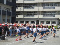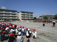 給食が終わると、南流タイム(そうじなしロング昼休み)に、来週23日に柏の葉公園総合競技場で行われる流山市小学校陸上競技大会に参加する選手を励ます会が校庭で行われました。5・6年の児童が参加して直接選手にエールを送りました(他の学年は後日録画を校内放送で視聴します)。選手が紹介された後に、種目の一部(80mハードル、高跳び、リレー)の模範演技があり、拍手喝采でした。児童会代表の言葉や応援団率いるエールのあと、選手を代表して4名の児童がしっかりとお礼の挨拶をしました。私からは、何事も「本気でのぞむことが大事」ということを話しました。多くの児童の中から選ばれた選手には、学校代表としてがんばってきてほしいと伝えるともに、選手になれなかった陸上部の児童が、選手発表後も練習に真剣に打ち込む姿が大変立派であったことも話しました。応援団や児童会を中心にみんなで陸上部を温かく応援できた会になりました。
