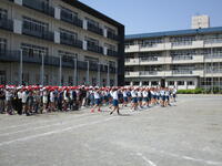 本日、お昼の校内放送で、陸上部を励ます動画を全校で視聴しました。ミニアリーナで撮影された応援団の力強いエールや応援歌、学年代表の児童の励ましの言葉などがあり、応援団をはじめ、インタビューや撮影をした児童がとてもすばらしいと思いました。