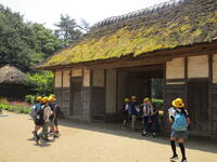 今日は、3年生と房総のむら(千葉県印旛郡栄町)に行ってきました。朝のうちは雨が降っていて、出発の会を体育館で行いましたが、現地につくとちょうどよい天候で、子ども達は、なかよくグループ見学や体験活動を楽しみました。けがやけんかもなく、施設の方のお話もよく聞いて、昔の暮らしについて興味を深めることができたと思います。楽しみにしていたお弁当タイムは、緑豊かな広場でゆっくりとることができました。学校に着いてからの到着の会も、実行委員や感想発表の児童の話を最後までよく聞いていました。教員の反省会でも、子ども達が安全やマナーに気を付けながら、なかよくグループ行動ができたことに、昨年からの成長を感じるという声があがりました。お弁当のご準備等、ご家庭のご協力のおかげで、実り多い校外学習になりました。
