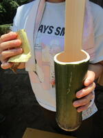 房総のむらは、体験型の教育施設なので、自由見学の他に、「どろめんこ」「千代紙ろうそく」「竹の花器」「畳のコースター」の中から一つをつくる体験をしましたが、ただ作って仕上げるだけでなく、それぞれについて専門の講師の先生からいろいろな知識を学びました。