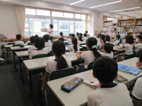 ボランティアさんが作業されている間にも、クラスごとの図書の時間があり、子ども達が本を返却し、また次に読む本を探していました。本校では週4日、学校図書館司書の先生が配置されており、図書室に行くと本選びのお手伝いをしてくれます。学年に応じた図書室の使い方のオリエンテーションも行っています。担任も、図書の時間を有効に使って子ども達と本との出会いを大切にしています。