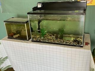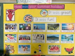 夏休み最後の平日となりました。秋の訪れはもう少し先でしょうか、まだまだ暑いですね。職員室前廊下には、メダカたち用に新しい水槽が入りました。ALTの先生は、新しい掲示物を作って児童のみなさんが登校するのを待っています!給食室の調理員さんたちも、9月3日からの給食の準備のために毎日出勤されています。2学期最初、久しぶりの給食は、ポークカレーライスにやさいソテー、梨ゼリーです。今から楽しみです!