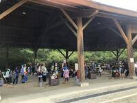 林間学園後半チームの5年1・2・6組が前半チームと入れ替わりに赤城青少年交流の家に到着しました。