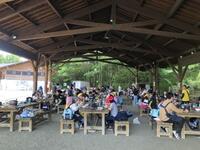 赤城青少年交流の家に着き、入所式で施設の方のお話を聞いてから、館内フォトラリーを楽しみました。このあとは、夕食、そしてキャンプファイヤーです。