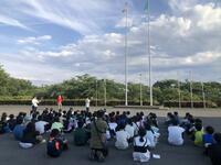 前半チームは、各部屋で朝の身支度を整え、遅れることなく全員が朝のつどいに参加しました。今日も朝から晴天でラジオ体操をしたり、所員の方のお話を聞いたりしてから、朝食バイキングに向かいました。
