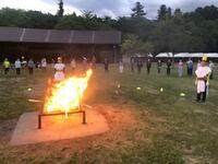 メインイベントのキャンプファイヤーでは、係の児童が練習の成果を発揮し、燃えさかる炎を囲んで、ゲームやダンスも盛り上がりました。
