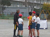 約1時間半のサッカーの授業は、みんなが楽しめる素晴らしい時間でした。中でも、最後に児童の代表と選手で試合を3セット行いました。児童代表チーム(3チーム)もとてもサッカーが上手くて驚きました!さすがにプロサッカー選手にはかないませんでしたが、迫力あるゲーム展開に応援もとても盛り上がりました。