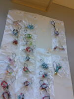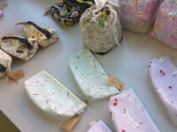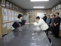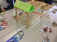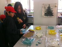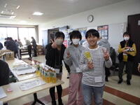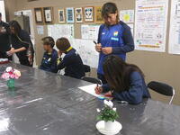 後半は「お買い物学習」「南流中の学校紹介コーナー」に分かれて活動しました。「お買い物」では、下の写真のように南流中の生徒の皆さんが作った手作りの品をお小遣いで買う体験をしました。どの作品も素晴らしいできばえで、本当のお店に出せるレベルでした。私もリースやペンケースなどクリスマス風のプレートなどいくつかおみやげに買わせていただきました。学校紹介は、南流中の生徒さんが作成したスライドショーを映しながら説明をしてくれました。