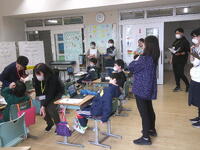 今日も学校支援ボランティアや保護者の皆様が安全見守りのために付き添って下さり、たいへんありがとうございました。おかげさまで事故なく、安全に、上手に道路を歩くことができました。1年生のみんなもちゃんとお礼が言えましたね!