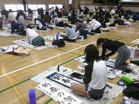 今日から12月。2025年も残りひと月となりました。今日と来週の月曜日の2日間、3年生以上を対象に、講師に本校6年生の卒業証書を書いて下さっている元小学校長の坪谷先生をお招きして、書き初め教室を行います。6年生は、先生が作って下さった名前のお手本を見ながら熱心に練習していました。