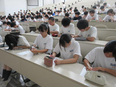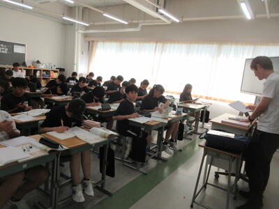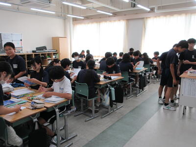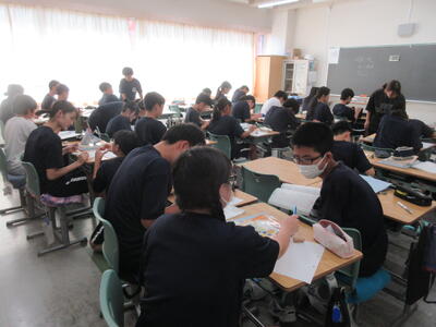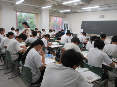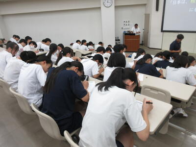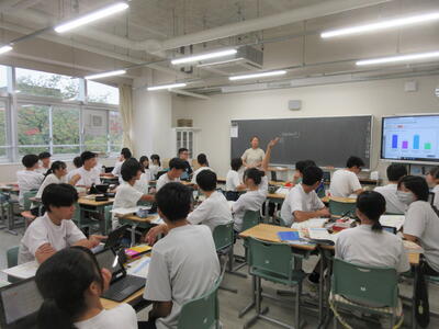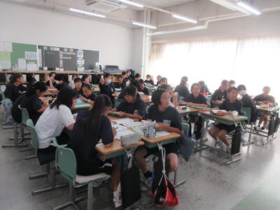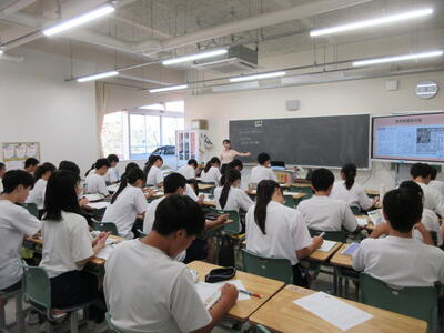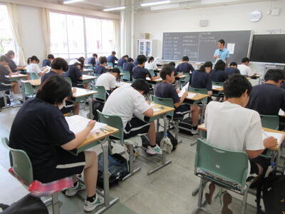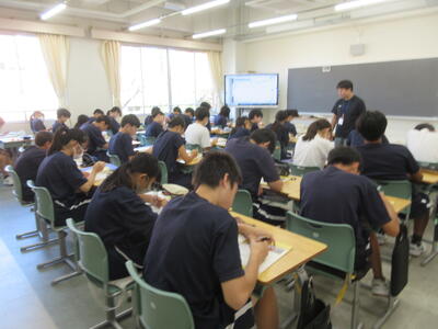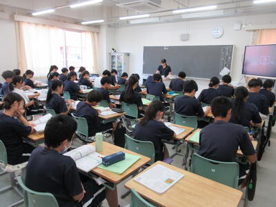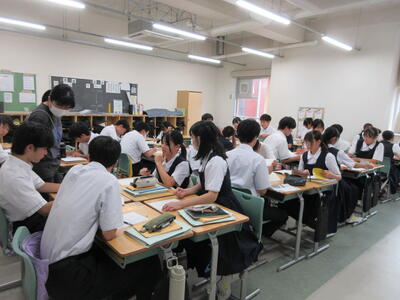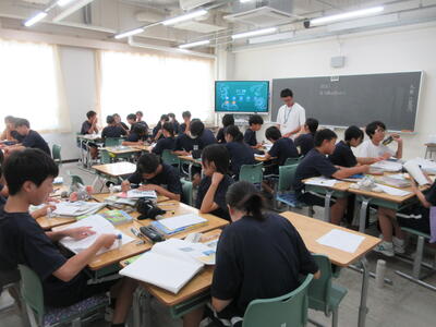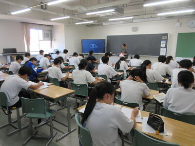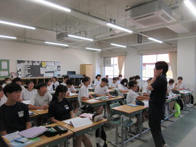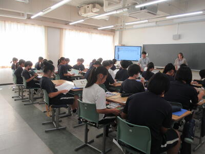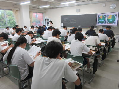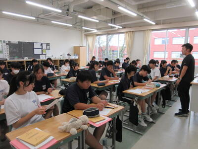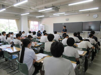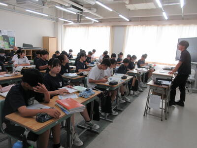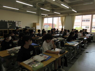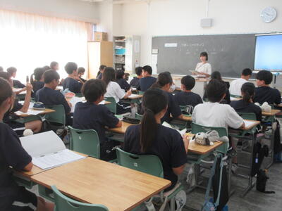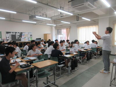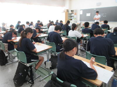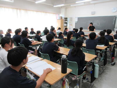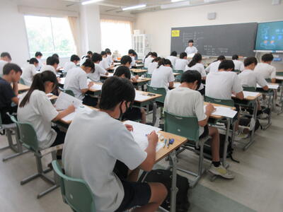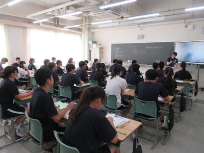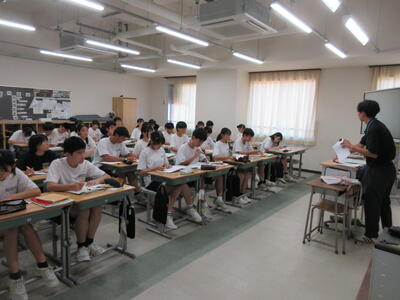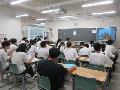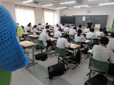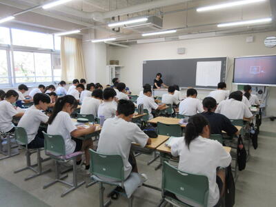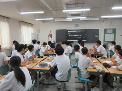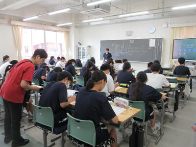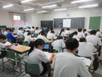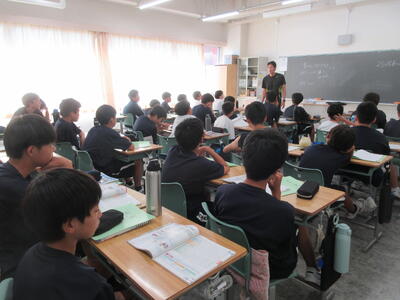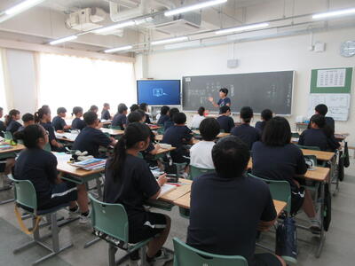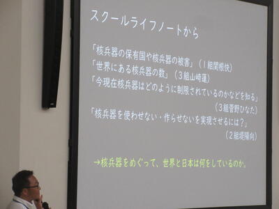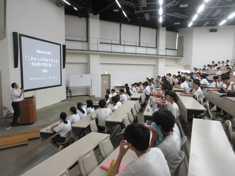7月16日(水)と本日、鴇田拳教頭先生の特別授業「これからの平和を考える~核兵器の学習を通して~」の後編が3年生対象に行われました(→前編の授業はこちら)。