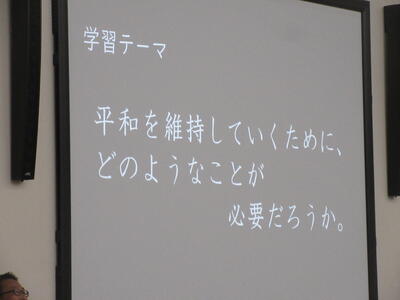 ▼学習テーマ「平和を維持していくために、どのようなことが必要だろうか」が提示されます。