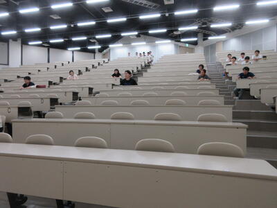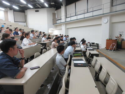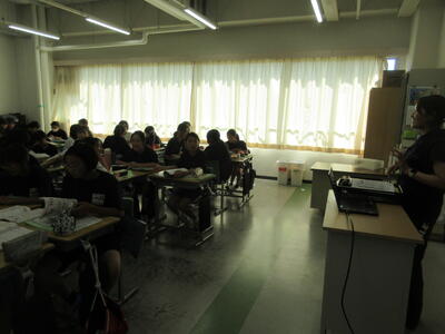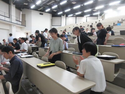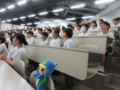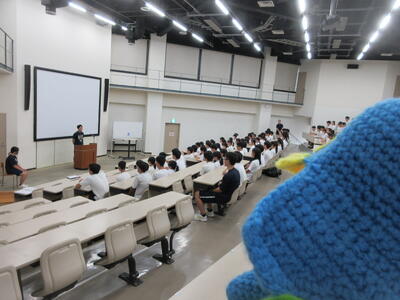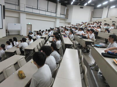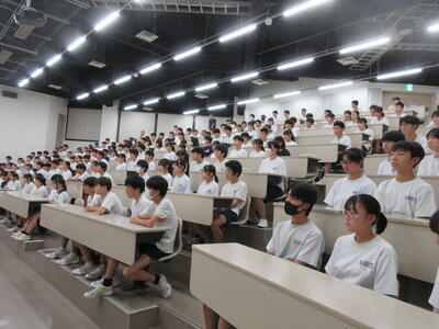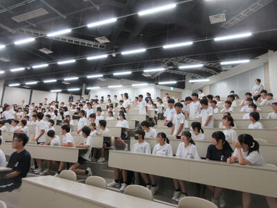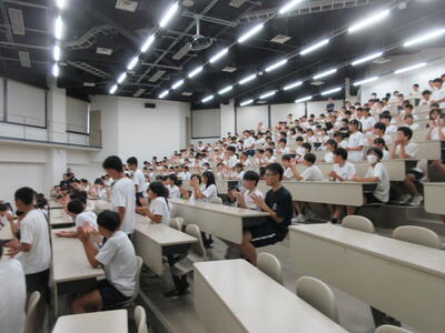 ▼昨日7月15日(火)の2校時、D棟3階~4階のホールにて、鴇田教頭先生による社会科の特別授業が3年生の4学級を対象に行われました。まるで大学の講義のような雰囲気の中、集結してきた子ども達。