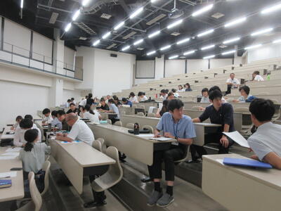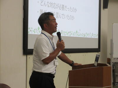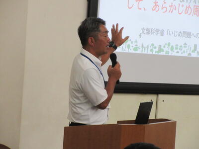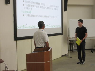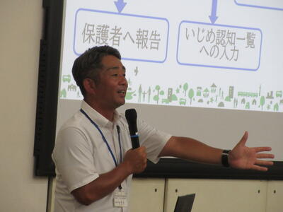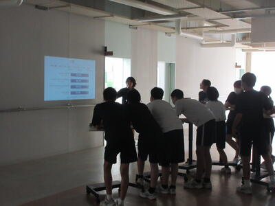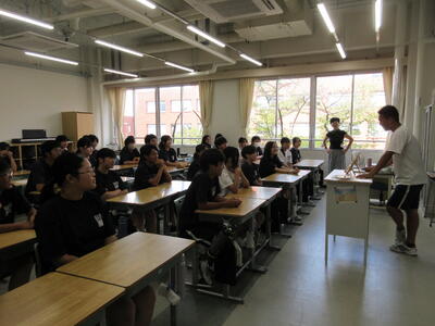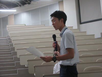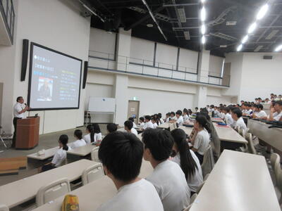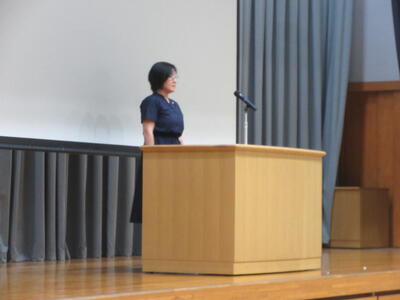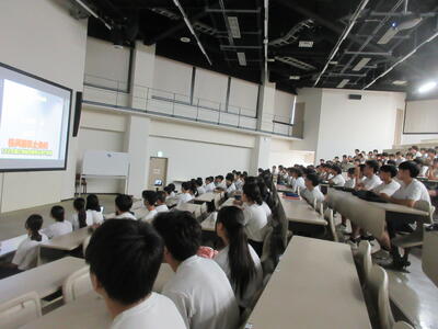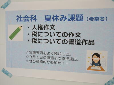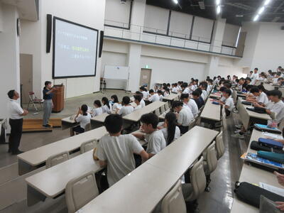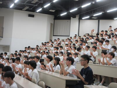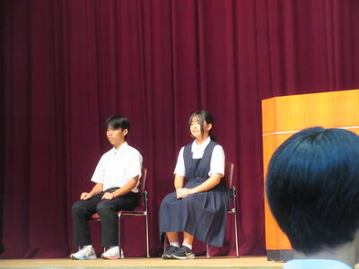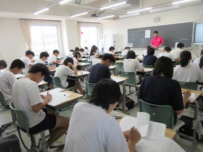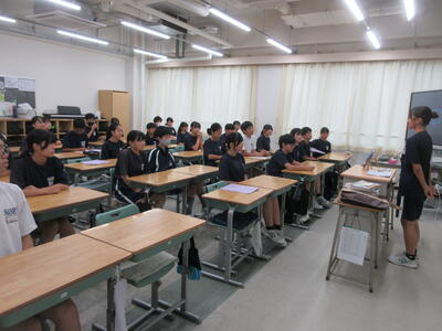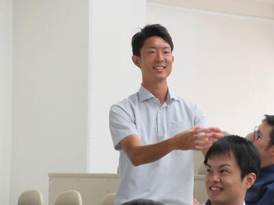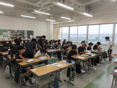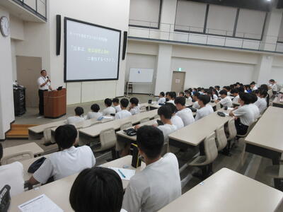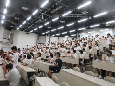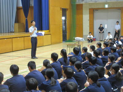 ▼最後に学年主任の田中先生から、この夏休み中に頑張った3年生達の紹介が行われました。