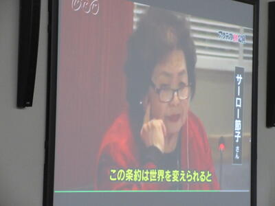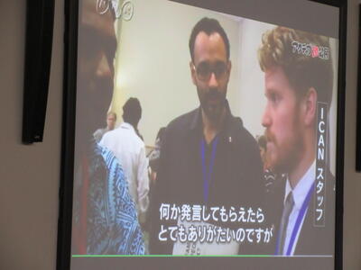 ▼「核兵器禁止条約」採択を目指したICAN(核兵器廃絶国際キャンペーン)の活動について紹介されます。