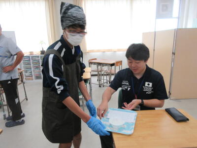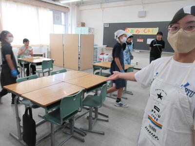 カフェではお客様の呼び込みから、メニューの聞き取りと会計、お客様のご案内、調理部門への伝達、調理、出来上がりの提供から片付けまで、子ども達自らの手で行われていました。慣れないながらも子ども達が一生懸命に、自分の役割を果たそうとする姿に、温かい気持ちが沸き起こります。