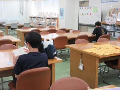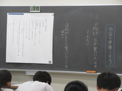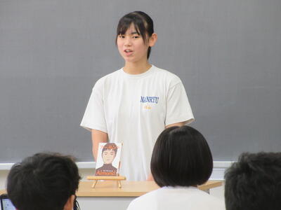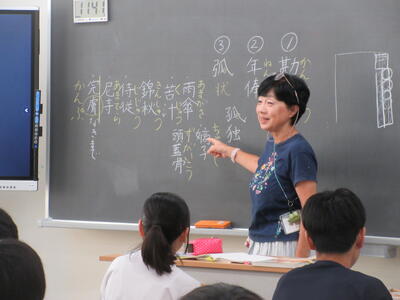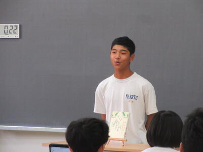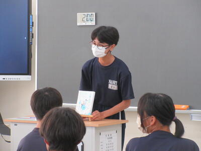 ▼A棟で行われている3年生の国語の授業。ビブリオバトルの真っ最中です。さすが、3年生堂々とした話ぶりです。