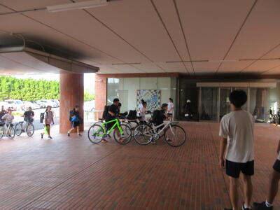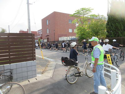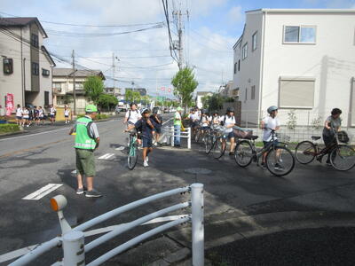 ▼曇り空で蒸し暑さが残る今朝の南流中。今日も南流中の西門のT字路付近には三村さんと稲川さんが立って、自転車通学者の安全を守ってださっています。ありがとうございます!!