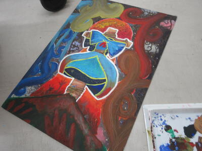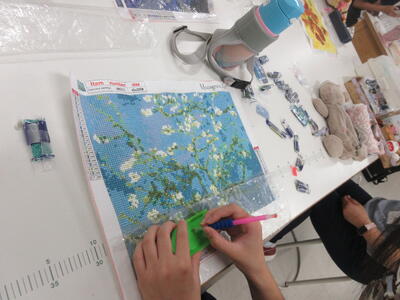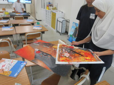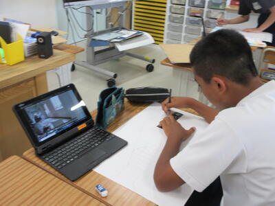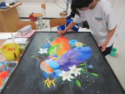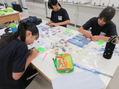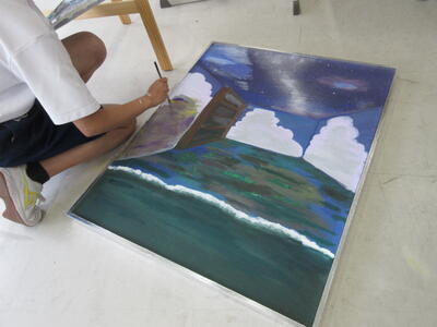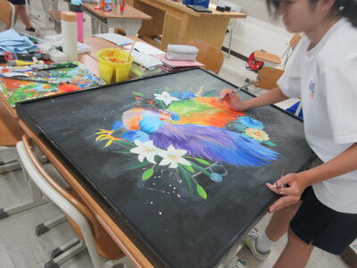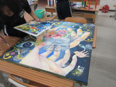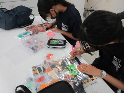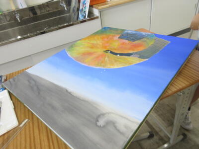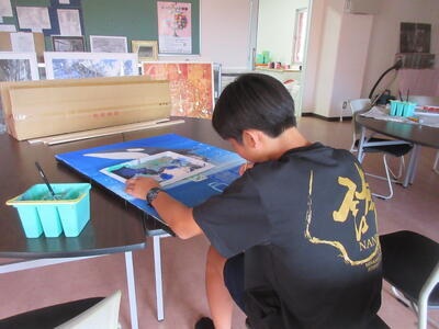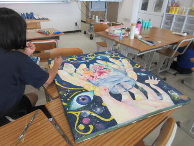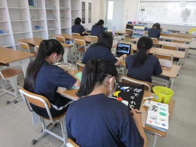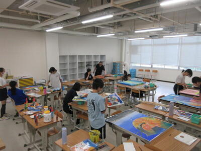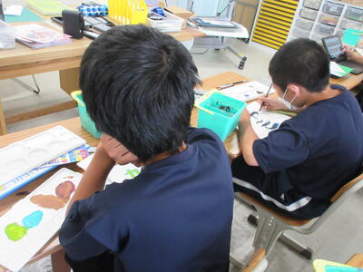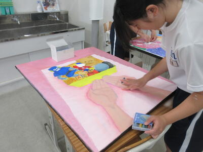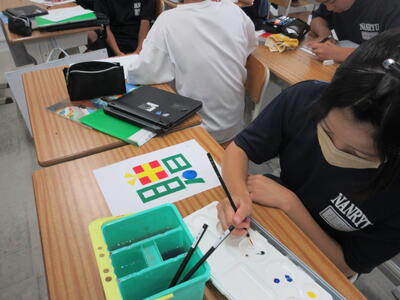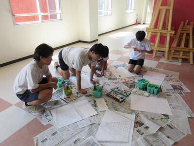 ▼第一美術室では、子ども達が絵文字に熱中しています。ちょっと覗いてみると、工夫を凝らした作品がいっぱい!!どんな作品に仕上がるのか楽しみですね!!