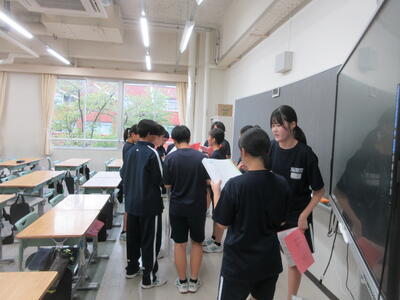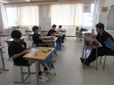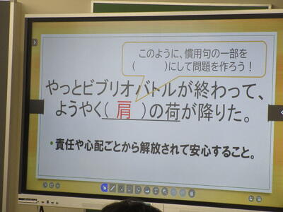 ▼国語ではビブリオバトルが行われています。実に楽しいプレゼンが行われています。