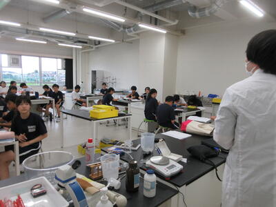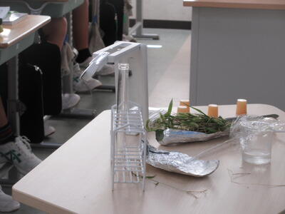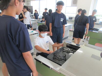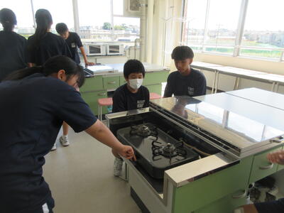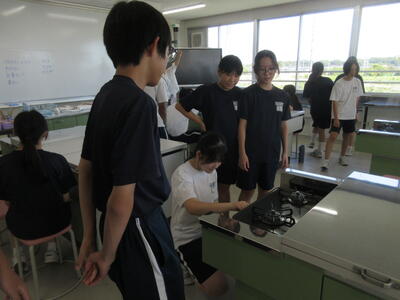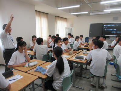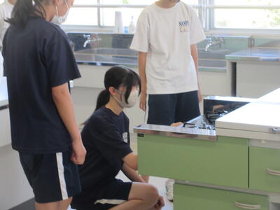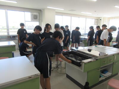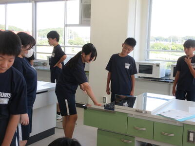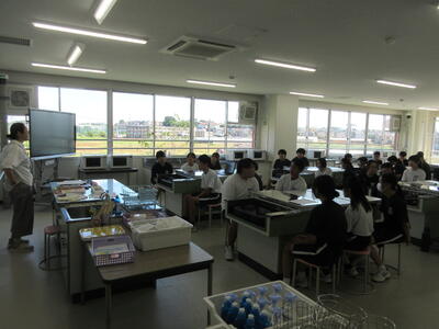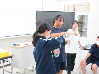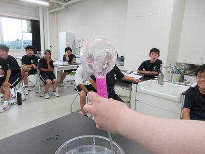 ▼第3理科室での授業の様子。気体の性質について実際に目で見て、感じて学習していきます。
