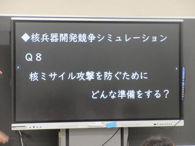 今、ワークシートに「最終判断」を書いてもらいましたが、それは今回の授業の最終判断なのであって、明日以降、変わっていっていいと思います。核兵器禁止条約に参加するべきか、平和を維持していくためにどんなことが必要か、今回の授業を時々思い出して、これからも考え続けてほしいと思います。
