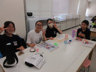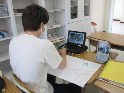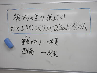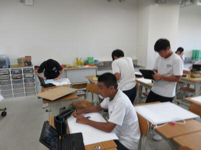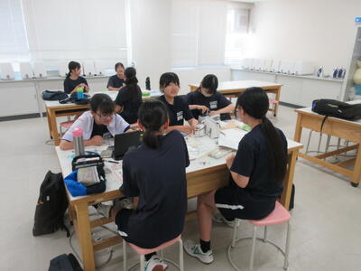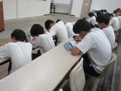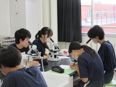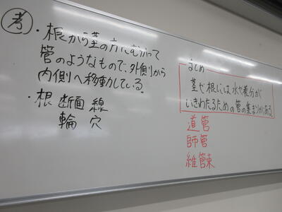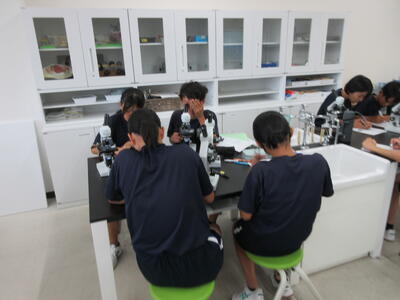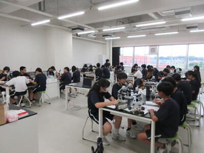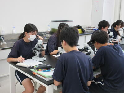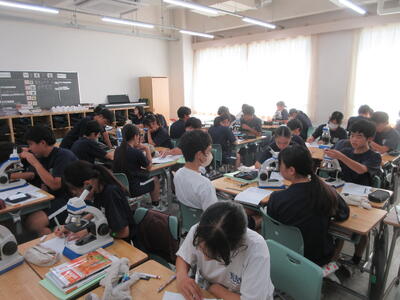 ▼F棟3階の理科室での授業。根や茎を顕微鏡で観察し、丁寧にスケッチ、記録していきます。