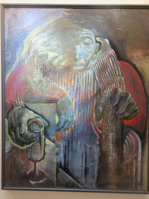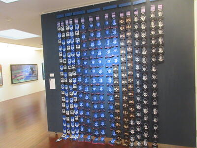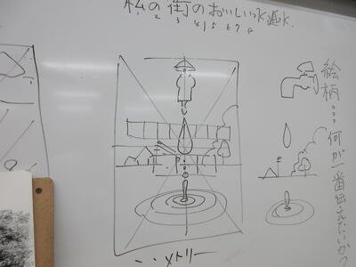 ▼第1美術室で、デッサンに取り組んでいる2年生の子ども達。石原重人先生が短時間で描き上げた子ども達の顔のデッサン。