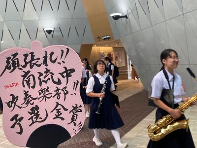 ▼テスト明けの南流中では、「あいさつ運動」が行われていました。中庭に元気な声が飛び交います。