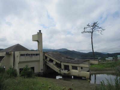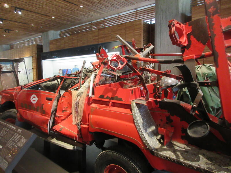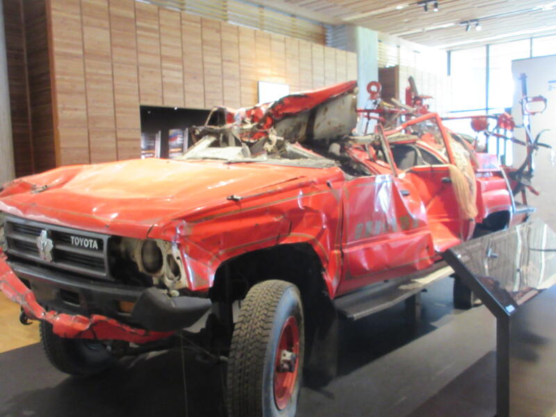 そのとき突然、私の左肩を触る手があることに気がつきました。その人は「あきらめるな! (がれきを)押し続けろ! 蹴り続けろ! あなたを助けてあげるから。あの隙間から光が入ってくるのが見えるだろう? そこに向かって、なるべく早く、はって行きなさい」と言うのです。私がそこからはい出てみると、崩壊した建物は燃えていました。その建物の中にいた私の同級生のほとんどは、生きたまま焼き殺されていきました。私の周囲全体にはひどい、想像を超えた廃虚がありました。