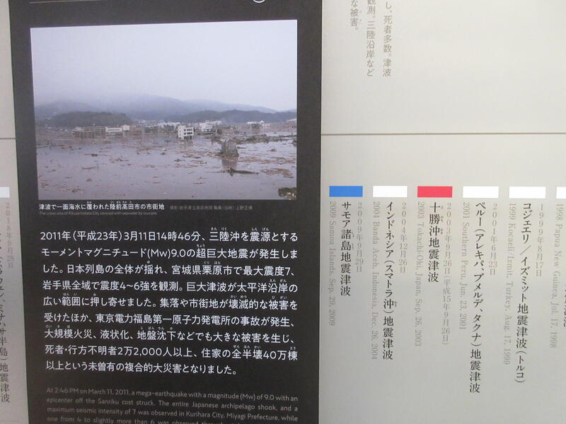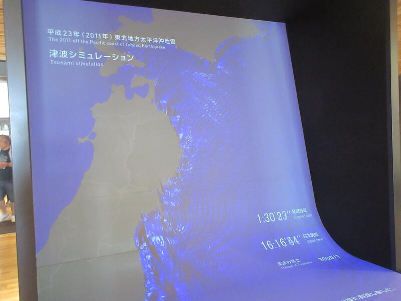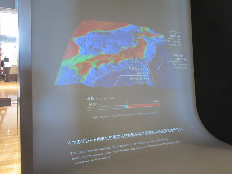 ▼1945年8月6日、午前8時15分、広島の上空で実際に原爆が投下された時の再現影像が流れます。投下から43秒後、地上約600メートルの上空で爆発した事実が告げられます。