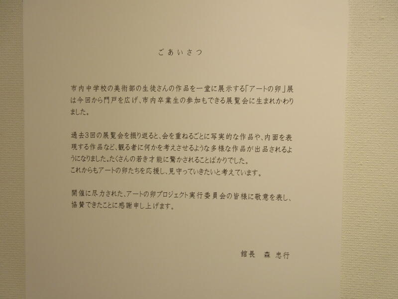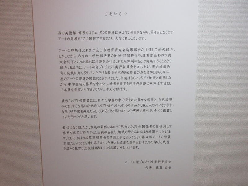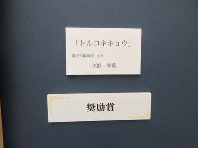 「重曹と酢の化学反応 一酸化炭素発生量の比較実験」長野明日香さん(3年)入賞/「気化熱について」重高正輝さん(2年)優秀賞/【生ごみの臭いはどうしたら臭いをおさえることができるのだろうか?】古西悠乃さん(2年)入賞/「肉のやわらかさについて」山口友里さん(2年)入賞/「水の質(軟水や硬水など)が植物生育へ与える影響の実験」長井彩歩さん(2年)入賞/「スパイク(強打)やチャンスボール(放物線を描く、ゆるいボール)はどれくらいの腕の角度であると一番良いカット(レシーブをすること)ができるのだろう」小岩井佑香さん(2年)入賞/「アオドウガネの色覚と臭覚の研究~アオドウガネが好む色と香りは何か?~」林優樹さん(1年)最優秀賞/「セミの本当に好きな木を探せ!と流山市のクマゼミ調査5」工藤漣さん(1年)最優秀賞/「氷を長持ちさせる方法を見つけ出せ!」髙木悠之介さん(1年)入賞/「大好きな海」半田蒼空さん(1年)入賞