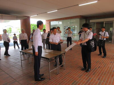 雨が上がり、久しぶりの陽射しに包まれた今朝の南流中。放課後の部活動がない日の朝は、生活委員会や生徒会、部活部長会中心にあいさつ運動が行われています。元気の良いあいさつの声が飛び交う南流中。気持ちの良い朝を迎えました。