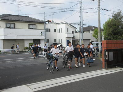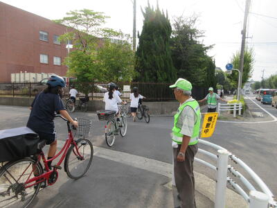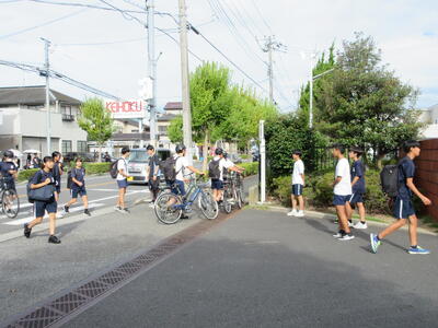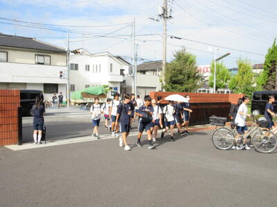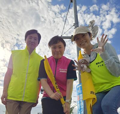 蒸し暑さが残る今朝の南流中。今日も思井福祉会館前の交差点では、子ども達の見守りに田中弘美前教育長とPTAの目黑会長の姿が。さらに今日は新たに昨年度の市P連会長の坂本さんも加わってくださり、子ども達の安全を守ってくださっていました。子ども達のために本当にありがとうございます!!