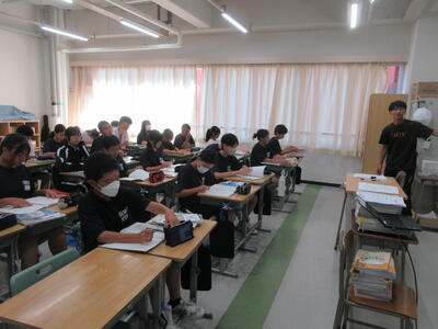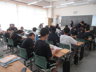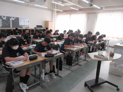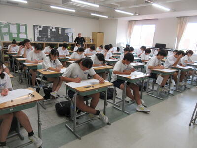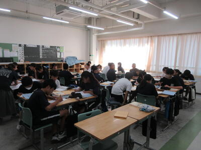 ▼3年生の教室。自分たちの進路に向けて本当に大切な期末テスト。みんな、頑張れ!!