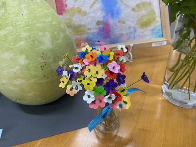 今日9月9日は、日本の四季の節目を祝う伝統行事の一つ、「重陽の節句」です。「重陽の節句」は、「重なる」に「太陽の陽」の字を書きます。「陽」とは「奇数」を意味し、昔中国では一番大きな奇数の数字である9が重なるこの日は、とてもおめでたい日とされていました古来より邪気を払う効果があるといわれている菊の花を生けたり、菊の花の香りを移したお酒を飲んだりして長寿を願う風習があります。日本でも奈良時代から平安時代あたりに伝わったとされ、宮中では菊を鑑賞し、宴が開かれていたといわれています。今日は給食の和え物に菊の花を取り入れました