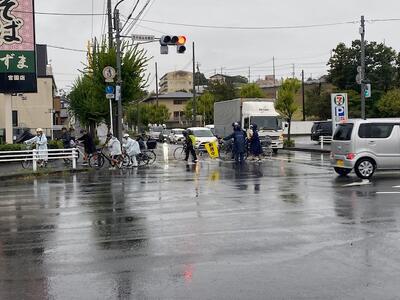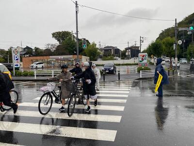 ▼今朝も思井交差点付近では、強力な「チーム南流」の方々が子ども達をしっかりとガード。子ども達のためにありがとうございます!!