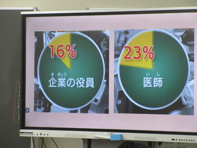 ▼先生からの「隣同士で話し合ってみてください」の投げかけに、すぐに話し合いを始める子ども達。良いクラスなんだなと実感します。