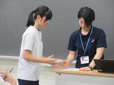 田中さん「授業の始めに、なぜ話す力が大切なのか、竹内先生の海外でのご経験や具体的なデータを基に説明してくださって、説得力がありました!」