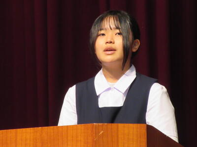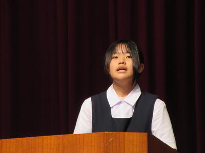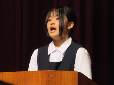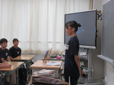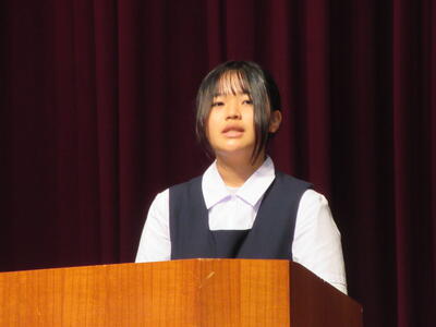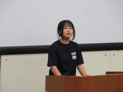 稲垣さんの発表タイトルは「The Power of Education」。堂々とした発表の姿はとても短期間で完成させたとは思えないほど。教育の大切さを強く訴えるその主張は説得力抜群です!! 本番では是非、南流中の代表として自信をもって発表して欲しいですね!!
