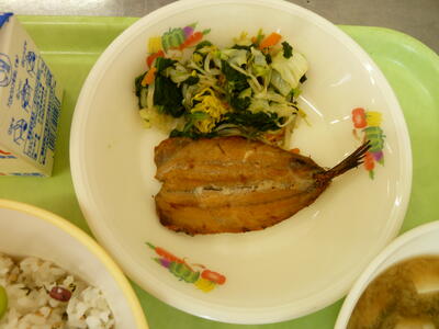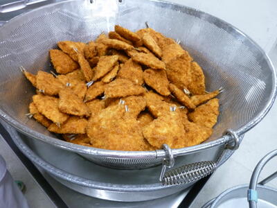 今日は、カリッと香ばしいフライにしました。小骨に気をつけて食べましょう。