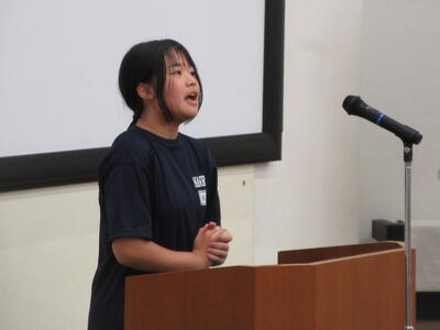 なお、この英語発表会は、流山市生涯学習センター(流山エルズ)の多目的ホールにて、9月11日(木)午前9時15分から開催されます。葛北地区の各中学校の代表者22名によって行われるこの発表会。皆さん、頑張る稲垣さんに南流中から熱いエールを送りましょう!!